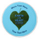 Blauer Text, "ERDE und HERZ werden mit den gleichen Buchstaben geschrieben", überlagert auf einem grünen, herzförmigen Blatt. Fügen Sie Ihren eigenen zusätzlichen Text hinzu. Sie können die Hintergrundfarbe sowie die Farbe Ihres Textes ändern.
