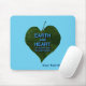 Blauer Text, "ERDE und HERZ werden mit den gleichen Buchstaben geschrieben", überlagert auf einem grünen, herzförmigen Blatt. Fügen Sie Ihren eigenen zusätzlichen Text hinzu. Sie können die Hintergrundfarbe sowie die Farbe Ihres Textes ändern.