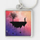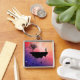 Genießen Sie dieses abstrakte Silhouette-Bild einer Person, die durch einen farbenfrohen und getrübten Raum auf einer Landmasse, genannt "Slice of Earth", reist.