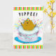 Personalisierte Geburtstagskarte mit einem Cartoon, der aus einem Kuchen springt. Entworfen für jeden geborenen am Groundhog Day. Bearbeiten Sie Text, um eine benutzerdefinierte Karte zu erstellen.