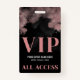 Alle Zugang Elegant Rose Gold VIP Abzeichen. Dieses Design besticht durch ein Imitat mit rosa, goldfarbenem Oberteil aus Metallic und eine Mischung aus rosa und weißen Schriftart, gepaart mit einem Schwarz-Weiß-Layout für ein trendiges und stilvolles Ambiente. Ideal für Konzerte, Modenschauen, Konferenzen oder Feiern wie ein süßes 16. oder Silvesterabend Party. Ein fett formatierter Serif-Schriftart am unteren Rand wird mit einer reinen Typografie vermischt, um VIP, den Ereignisnamen, das Datum und den "All Access Pass" anzuzeigen. Alle Texte und Farben sind vollständig anpassbar.