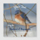 Ein hübscher Blauvogel, der über einem Ast ruht, vor Schneekulisse mit den inspirierenden Worten Möge der Blauvogel des Glücks immer in dir liegen. Personalisieren Sie Ihren Text. Naturfotografie von Susan.
