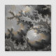 Ein sphärisches Objekt mit reflektierender Oberfläche setzt sich deutlich aus komplexen, Fraktal-ähnlichen Mustern mit verschiedenen Grau-, Schwarz- und Goldtönen zusammen. Die komplizierten Muster erscheinen fast wie eine strukturierte Landschaft, während die Kugel wie ein Objektiv wirkt, das die umgebenden Details verzerrt und komprimiert.