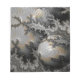 Ein sphärisches Objekt mit reflektierender Oberfläche setzt sich deutlich aus komplexen, Fraktal-ähnlichen Mustern mit verschiedenen Grau-, Schwarz- und Goldtönen zusammen. Die komplizierten Muster erscheinen fast wie eine strukturierte Landschaft, während die Kugel wie ein Objektiv wirkt, das die umgebenden Details verzerrt und komprimiert.