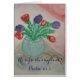 Eine Kristallschüssel mit frischen Blumen und der viel versprechende Vers für einen erneuerten Geist.
