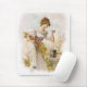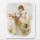 Junge Dame, die gut trinken kann. Sie hält einen Mantel Getreide und Blume unter ihrem Arm. Kunstgeschenke für Vintage und Nostalgische Liebhaber.
