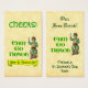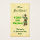Ein individuelles Business-Card-großes St. Patrick's Day Party Drink Ticket mit keltischen und alten englischen Buchstaben vorne und hinten, und Vintage Kunst eines irischen Stadion Toasting mit einem silbernen Chalice auf einem Imitat Pergament Hintergrund.