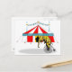 Circus Elephant reitet Fahrrad mit rotem und weißem Zirkuszelt