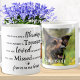 Ehre deinen besten Freund mit einer personalisierten Tasse zum Gedenken an ein Haustier. Diese einmalige Tasse für den Sake-Hund ist das ideale Geschenk für sich selbst, Familie oder Freunde, um Ihren Lieben zu ehren. Wir hoffen, dass Ihr Hundedenkmal Ihnen Frieden, Freude und glückliche Erinnerungen bringen wird. Zitat: " Ihr Leben war ein Segen, euer Gedächtnis ein Schatz, ihr seid jenseits von Worten geliebt, ihr seid über Maß hinweg vermisst." Personalisieren mit Foto und Namen. Die Tasse ist zweiseitig, ein Seitenzahl, ein anderes Foto und Name. COPYRIGHT © 2020 Judy Burrows, Black Dog Art - Alle Rechte vorbehalten. Foto Hundeschäden Erinnerung Haustiere Memorial Kaffee Tasse