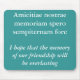 Ein helles aquamarines Mousemat mit lateinischer Phrase und englischer Übersetzung darunter. "Ich hoffe, dass die Erinnerung an unsere Freundschaft immerwährend sein wird", denke ich, es ist ein ziemlich süßer Satz: