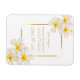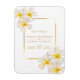 Hübsche tropische Blume botanische Aquarell Hochzeitskarte Erinnerung. Schöne Hochzeitskarten, die sich ideal für eine tropische botanische oder goldene Erinnerung mit weißer Blume themed event eignen. Personalisieren Sie Ihre persönlichen Daten. Einladungen und andere passende Artikel stehen ebenfalls zur Verfügung. © Original blumenfrangipani plumeria florale Aquarellmalerei und Design von Sarah Trett für www.mylittleedenweddings.com nur auf Zazzle.