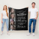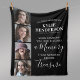 Moderne Tribute Keepake-Decke mit einem stilvollen schwarzen Hintergrund, der in jede beliebige Farbe verändert werden kann, einer 4-Foto-Collage der Person, die Sie sich erinnern, einem Beileid-Zitat und einer Gedenkvorlage, die leicht zu personalisieren ist. Diese individuelle Collage Decke aus Foto ist das ideale Geschenk für Sie, Ihre Familie oder Ihre Freunde, um jene besonderen Menschen zu ehren, die nicht mehr bei uns sind.