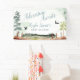 Abenteuer wartet auf Banner. Das Design besticht durch eine Bergszene mit Bäumen und einer Aquarellstruktur. Weitere Party-Vorräte erhalten Sie im Metro-Events Zazzle Shop und unter Metro-Event.com.