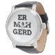 Dorky und lustige Typografie Text Design Uhr mit einem Wort aus dem beliebten Meme von Ermahgerd. Ermahgerd ist ein sehr unausstehlicher und lispitiver Weg, um zu sagen: "Oh mein Gott!" Passen Sie Ihre eigene Text- und Hintergrundfarbe an. Verwenden Sie einen ermahgerten Übersetzer wie diesen [http://ermahgerd.jmillerdesign.com/#!/translate], um Ihren personalisierten Text noch alberner zu machen!
