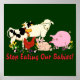 Eine Kuh, Schafe, Schweine, Kaninchen und ein Huhn sagen: "Hört auf, unsere Babys zu essen!" Eine schöne Art, Fleischesser daran zu erinnern, dass sie jemandes Kinder essen.
