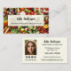 Visitenkarte für Ernährungstherapeuten, Gesundheitsberater oder berufliche Diäten mit einer farbenfrohen Auswahl an frischem Gemüse und Obst. Auf der Rückseite ist Platz für Ihr individuelles Foto sowie mehrere Social Media Icons (Sie können die Icons durch andere ersetzen oder löschen, je nach Ihren Bedürfnissen).