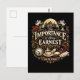 Ein reich verzierter viktorianischer Bucheinbandentwurf für Oscar Wildes klassische Komödie, mit vergoldeter Typographie, Putten, roten Rosen, einer Taschenuhr, Teetasse und Verlobungsring vor einem dramatischen schwarzen Hintergrund.