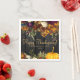 Die Blume des Herbstes und der Kürbisrahmen auf einem dunkelbraunen Holzboden verbrennen eine schöne rostige Orange und eine dunkelbordeauxfarbene Farbe. Das charmante Erntedank-Dinner mit personalisierten Papierservietten mit einer angesagten Goldtypografie-Schrift. ++++++++ Einfach mit Ihrem Text personalisieren! Geeignet für die traditionelle rustikale Bauernhaus Freiluft-Garten Familie und Freunde Party oder Grill.