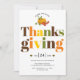 Farbenfrohe Typografie Pumkin Erntedank Einladung. Ein modernes Design, das den Text "Erntedank" in bunten Typografie-Stil und Kürbis zeigt. Farben: braun, orange, gelb, olivgrün.