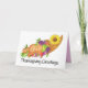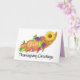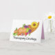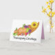 Erntedank-Karte. Handgemalte Herbsternte in Aquarellfarbe. Cornucopia mit einer Sonnenblume. Die perfekte Herbstszene für einen bunten Erntedank. Überraschen Sie Ihre Freunde und Familie mit einem einzigartigen Erntedank Gruß.