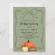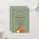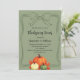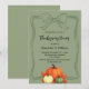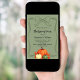 Ein moosgrüner Hintergrund. Mit Kürbissen dekoriert und mit einem handgezeichnet Bogen versehen. Personalisieren Sie die Party-Details und fügen Sie sie hinzu.
