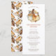 Dieses elegante Erntedank Dinner-Menü bietet ein wunderschönes abgestumpftes und gedämpftes Taupe- und Brauntöne-Blätter, Orangenkürbis, cremefarbene Blume und goldene Birnen. Auf der Rückseite des Menüs befindet sich ein skurriles Muster. Finden Sie passende Artikel in der Elegant Boho Floral Erntedank Collection.