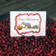 Alles Gute zum Erntedankfest vom Eichhörnchen! Auf dieser Karte befindet sich ein Eichhörnchen, das einen Kürbis schneidet, der mit Cranberries umringt ist.