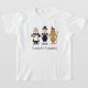 Drei Kinder in Kostümen aus der Kolonialzeit schließen sich diesem Erntedank zum Shirt an, um den ersten Erntedank zu feiern, den europäische Kolonisten auf amerikanischem Boden halten. Das Pilgerkolonie-Mädchen hält eine Schüssel Mais und trägt eine Kappe und Schürze, der Pilgerjunge hat einen schwarzen Hut und eine schwarze Jacke und eine Kniehose, und das Indianermädchen ist in einem inspirierten Amerikanische Ureinwohner mit Federkopfteil und gekleidetem Kleid gekleidet. Der anpassbare Slogan "Danke für die Freundschaft" kann in Wörter Ihrer Wahl geändert werden. Dieses Erntedank Friendship Design ist auf der ganzen Palette von Shirts und anderen Tragbaren für Kinder, Babys und Erwachsene.