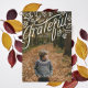 Handschrift dankbar mit illustrierten Herbstlauben über Vollblut-Foto; Design auf Topversion