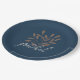 Herbst rustikale Stil Papier Teller in Marineblau mit braunen Blätter, Cream Weiß Skript "dankbar" Sie können leicht auf Ihre eigene Phrase personalisieren. Schöne Tischdekoration mit Tellern für Herbst und Herbst. Erntedank feiern.