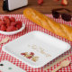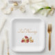 Rustikale Papiertafel aus Herbst, mit roten und goldenen Herbstlauben auf weißem Hintergrund. Mit elegantem Goldskripttypografie-Schriftzeichen können Sie Ihre eigenen Informationen hinzufügen. Günstig zum Sprichwort bedanken Sie sich bei Ihren Erntedank- oder Abendfeiern.