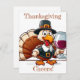 Dies ist ein Erntedank-Truthahn, der ein Glas Wein in einem Toast züchtet. Eine lustige niedliche Karte, die als Einladung zu Ihrer Zuhause verwendet werden kann oder als "Denken Sie an Sie am Erntedank" zu senden. Der Truthahn ist in den Pilgerbekleidung mit Hochglanz.