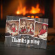 Glückliches Thanksgiving in klassische und einfache Serif Typografie auf dem Land rustikale Barnyard Thema. Fügen Sie benutzerdefinierte Fotos und Familiennamen hinzu. Fügen Sie das Monogramm auf der Rückseite ein.