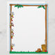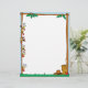Dieser lustige Erntedank-Letterhead zeigt eine Axt und einen Häkchen in der unteren rechten Ecke und einige Truthühner, die aus dem verlassen Seitenrand herausgucken.