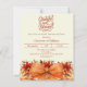 Eine weiche Creme, beige Hintergrundfarbe. Dekoriert eine große orangefarbene Bug und Fall Blume. Personalisieren Sie die Party-Details und fügen Sie sie hinzu. Text-Skript: Dankbar und gesegnet. 1 Blatt = 1 Einladung mit Druckkante bis Kante.