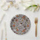 Die Teller aus Erntedank-Musterpapier bieten eine Herbsternte-Szene aus bunten Kürbissen, Kuhschädel mit Rose, Eicheln und Herbstblättern auf elegantem Taupe-Hintergrund.