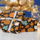 Erntedank Retrostil Kürbis Ahorn Blätter auf dunklen Hintergrund Papier Geschenkverpackung.