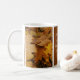 Goldener Herbstlaub auf einem Zimthintergrund ziert diese Tasse. Das Zitat liest, "wenn haben Sie Liebe in Ihrem Herzen, das Sie sind reich unmäßig!"