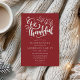 Feiern Sie Erntedank mit Eleganz und Dankbarkeit und nutzen Sie diese einladende "Be Thankful"-Dinner-Einladung. Mit einem warmen bordeauxfarbenen Hintergrund und zartem Schriftzeichen mit Herbstlauben ist dieses Design ein Set für eine festliche Ansammlung. Lade deine Lieben ein, an einem gemütlichen und unvergesslichen Erntedank-Dinner mit dieser zeitlosen und charmanten Einladung teilzunehmen.