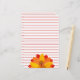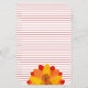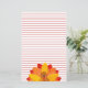 Ein rotes Schreibpapier mit weißem Truthahn mit bunten Federn in Gelb-, Orange- und Rottönen, illustriert mit Aquarell. Sie können Größe und Lage des Truthahns an Ihre Bedürfnisse anpassen. Ideal für Urlaubsbriefe und Kunsthandwerk!