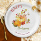 Papierplatte mit Aquarellmalerei mit Blume und Kürbis in warmen Herbstfarben. Diese Servietten eignen sich hervorragend zum Erntedank oder zum Party im Herbst.