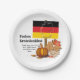 Stilvolle, patriotische DEUTSCHE ERNTEDANK - ERNTEDANKFEST - Teller mit KUNSTBEWEGLICHEM TEXT, die die Kontur und Fahne DEUTSCHLANDS auf einem Banner mit Kürbis und Herbst-Herbstlauben zeigen. Der Wortlaut lautet FROHES ERNTEDANKFEST - DANKE HERR FÜR IHRE FAITHFULNESS UND FÜR ALLES, WAS SIE GETAN HABEN. Dieser Text ist KUNDENBAR, sodass Sie auf alle Deutsch, alle Englisch, oder eine Mischung von beidem ändern können! Matching Party Vorräte und Grußkarten zur Verfügung.