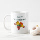Ein interessantes Design mit Dank für Gottes Bereitstellung, und eine Liste von einigen der schönen Lebensmittel, die wir genießen, und dürfen niemals als selbstverständlich. Auf der Rückseite der Tasse befindet sich ein kleines Design mit Blätter und Trauben, mit den Worten "Zum Erntedanken!", die Sie nach Belieben ändern oder löschen können. Fügen Sie einen Namen hinzu, um Ihre Tasse zu personalisieren.
