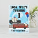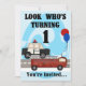 Premières invitations d'anniversaire comportant des véhicules de secours de pompe à incendie et croiseur et texte de police qui lit le "regard qui tourne 1" !