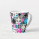 Eine kühne, gemusterte Latte-Tasse mit einer lustigen Aufnahme für einen Tee- oder Kaffeeliebhaber. Verwenden Sie "Diese Vorlage personalisieren", um den Text "Erste Dinge - Erste Teepause!" zu ändern, falls gewünscht. Belebt mit dekorativen Fliesen verschiedener Größe und abwechslungsreichen Mustern. Schwarz-Weiß-Designs mit schwarzem, cremefarbenem, magentafarbenem und blauen Hintergrund. Alle Muster wurden von mir entworfen und gezeichnet und sind durch keltisches und islamisches Design inspiriert.