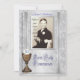 Erste Kommunion Einladung mit Foto- und Goldkalice auf Satin-Look Hintergrund