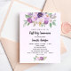 Ein violetter, lavendigerer, wasserfarbener Hintergrund. Die Einrichtung ist mit violetten und lila Blume und Grünpflanzen sowie einem goldenen Kreuz gestaltet. Personalisieren Sie Ihren Namen und Ihre Empfang-Daten und fügen Sie diese hinzu. 1 Blatt = 1 Einladung mit Druckkante bis Kante.