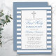 Erste heilige Kommunion Silver Dusty Blue Striped Einladung