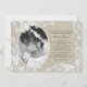 Lacy Blumendesign über eine weiche rustikale Einladung zum Foto. Ovales Foto mit weißer Spitze inspiriert Blumendesign für die Erste Heilige Kommunion Ihres kleinen Mädchens.