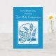 Diese blaue Karte ist perfekt für alle, die ihre erste heilige Kommunion erhalten. Es ist perfekt für jedes Alter und jede Beziehung. Weiß zeichnend Trauben und Weizen - die Zeichen der Kommunion sind auf der Vorderseite der blauen Karte.